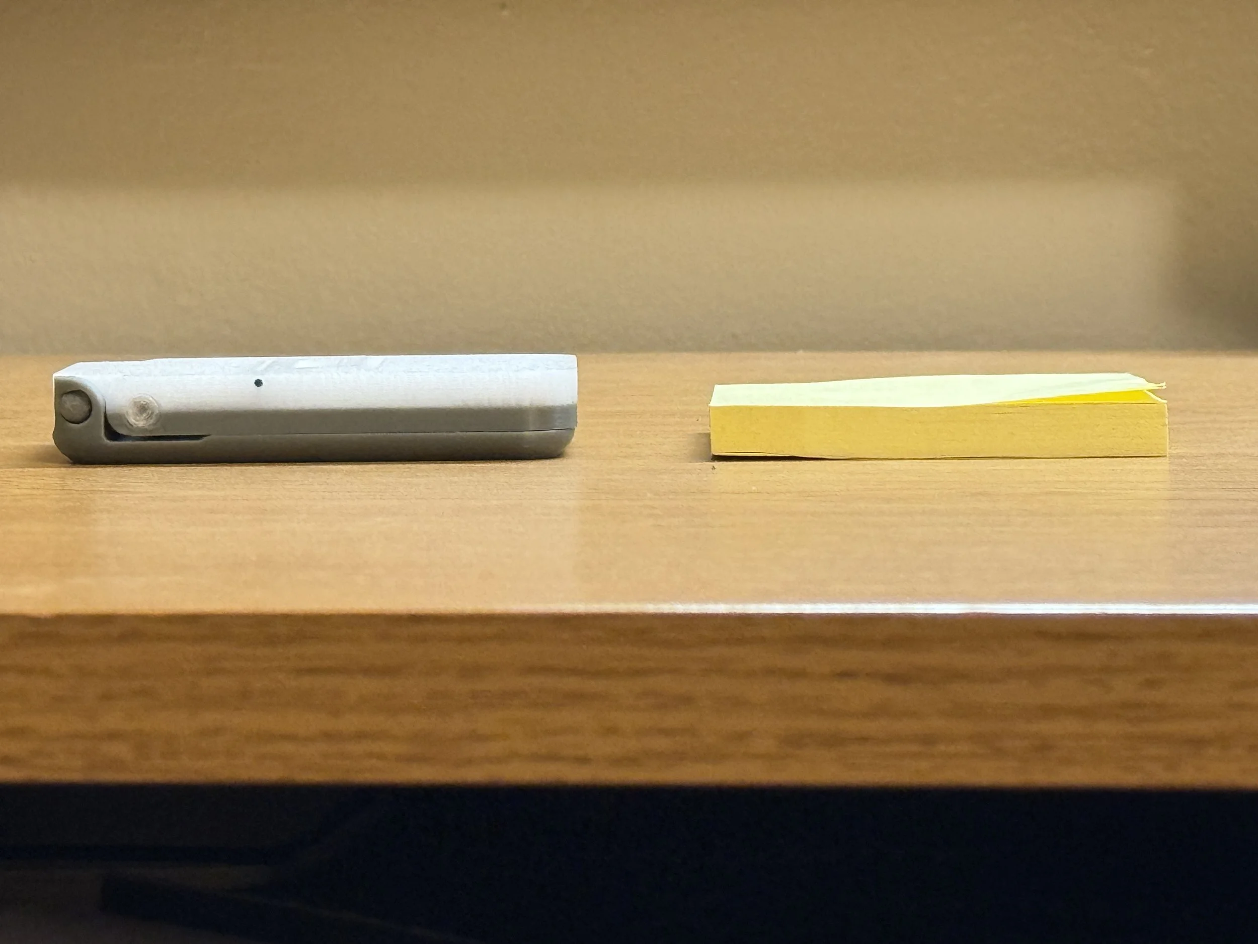 This new version is very thin and incredibly light, so I can slip it into my pocket and hardly notice it’s there. The bottom part features almost 100% infill, giving it a heavier, premium feel despite its lightweight design. When the top closes over the base, it makes a satisfying, premium sound. Since the top is extremely light, the stand can be opened without lifting it.